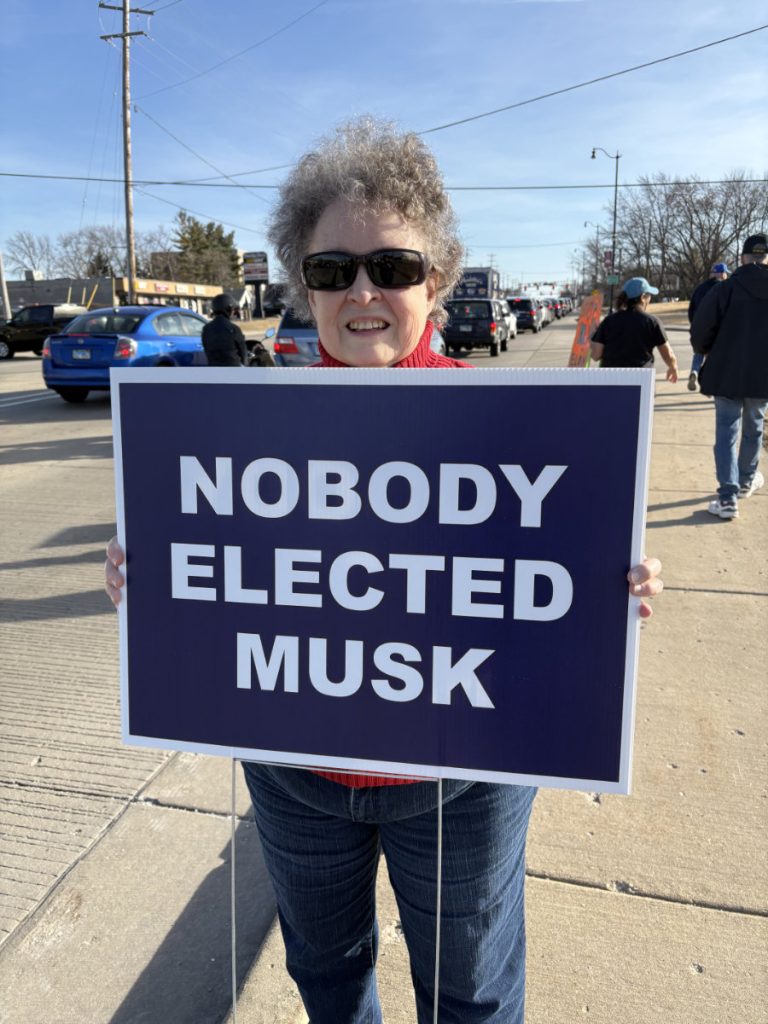 Trump Store Protest in Huntley IL March 15, 2025March 13, 2025 Huntley Area Dems protested on Monday in front of the Trump store on Rt 47 in Huntley. 30 activists turned out and were greeted with many approving car honks.