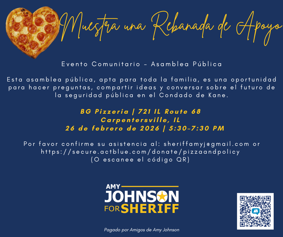 Join Amy Johnson for a relaxed, family-friendly evening where neighbors can come together to talk openly about the issues that matter most to Kane County. Whether you have questions about public safety, ideas to share, or simply want to meet face-to-face, this is your time to be heard.